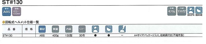 (小サイズ設定47〜53cm)。また、回転式ヘルメットでありながら、作業用としてかぶることを想定して